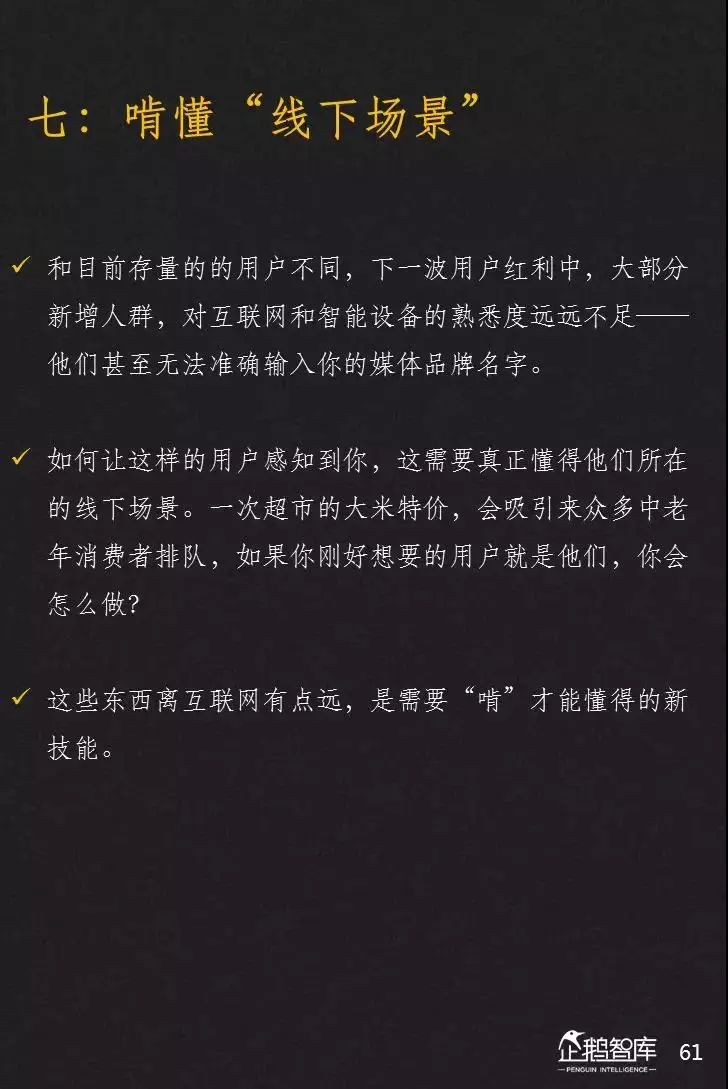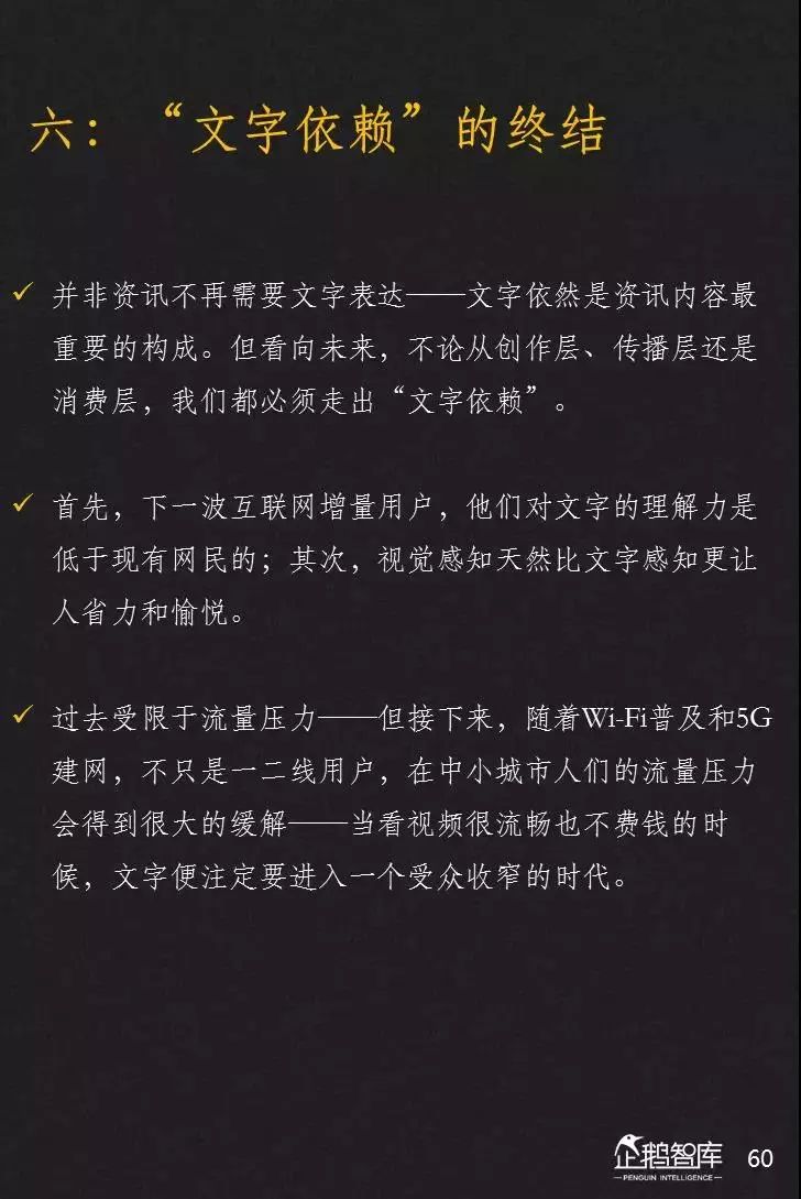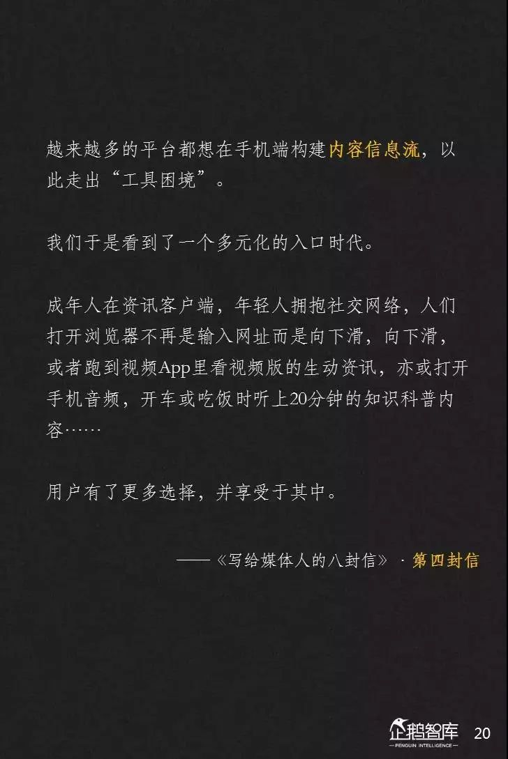 企鹅智库连续第六年发布中国新媒体趋势报告,此次报告中总结的媒体生存核心趋势如下: