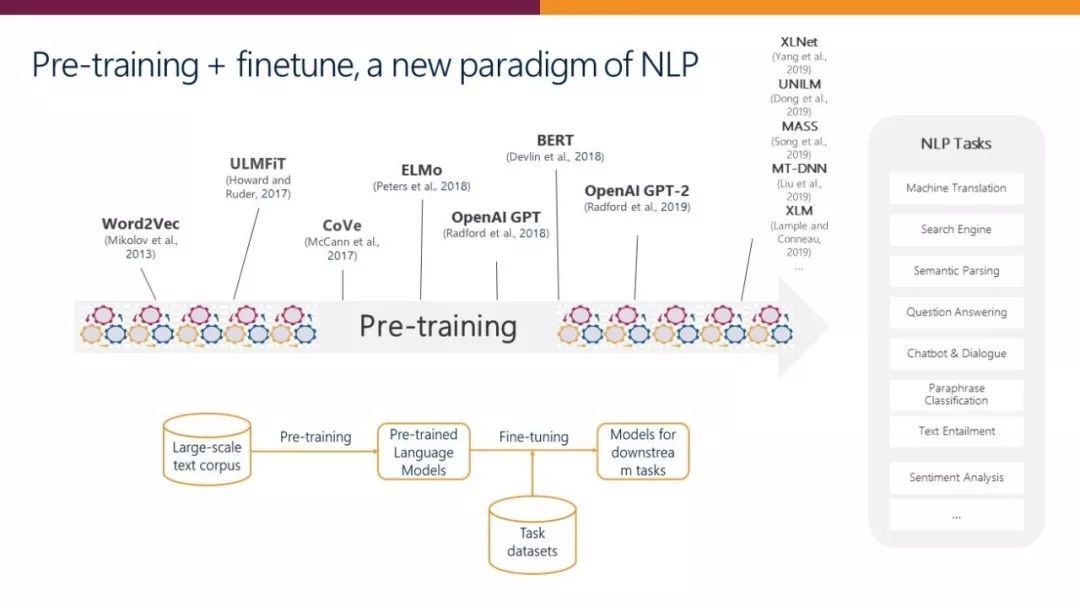 现在,已经形成了一种新的 NLP 范式——使用大规模文本语料库进行预训练,然后使用特定任务的小数据集进行微调。这种新范式使得研究人员能够专注于特定任务。适用于各种任务的通用端到端训练模型降低了每个 NLP 任务的难度,从而加快了创新步伐。