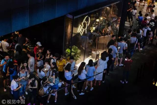 2017年8月20日晚上8点多,北京三里屯,人们还在排队买奶茶丨视觉中国