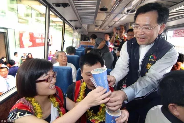 2011年厦门第一批赴台自由行的旅客在台北松山机场品尝“正宗台湾珍珠奶茶” | 视觉中国
