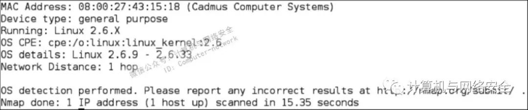 根据上述结果,我们可判断目标主机运行的操作系统是Linux 2.6。