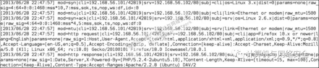 如果p0f成功地识別出远程主机的操作系统,这个程序将会在日志文件(p0f.log)和屏幕上记录相关信息。