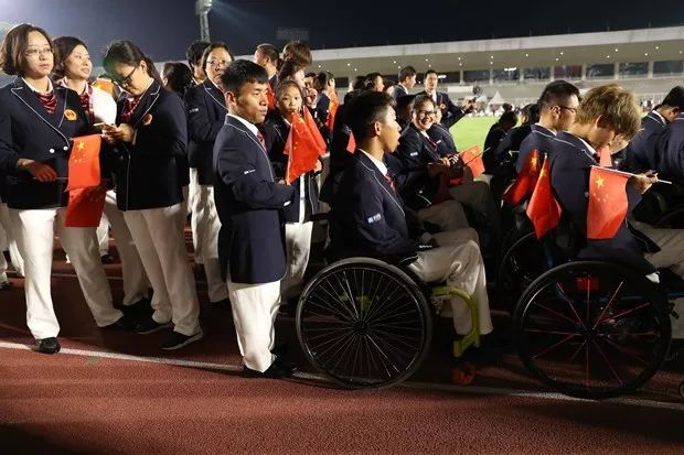 在里约残奥会上获得过两金一铜的田径队轮椅竞速运动员邹丽红,是这届亚残会中国代表团的“明星人物”。面对镜头,她捋了捋身上的正装礼服,边说边回头看看自己的队友:“看,今天我们代表队都很帅气。”