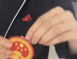 国徽的设计,也颇费一番心思。用别针固定国徽,会在留下痕迹,而且上身有了动作,还会晃动。用磁贴,但又怕铁不牢固。后来,王培沂团队想到用U型卡扣,插在胸前的口袋上,既能很好地把国徽固定住,又不会在衣服上留下痕迹——可供运动员日后重要场合穿着。