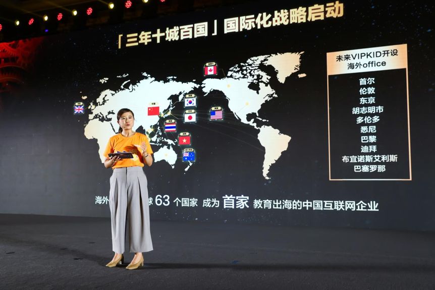 作为一家全球化基因的教育科技公司,VIPKID 今天也正式公布了国际化战略——“三年十城百国”战略,以及相应的目标——在未来三年内,在全球 10 个重要支点城市开设办公室,将教育服务覆盖到 100 个国家。