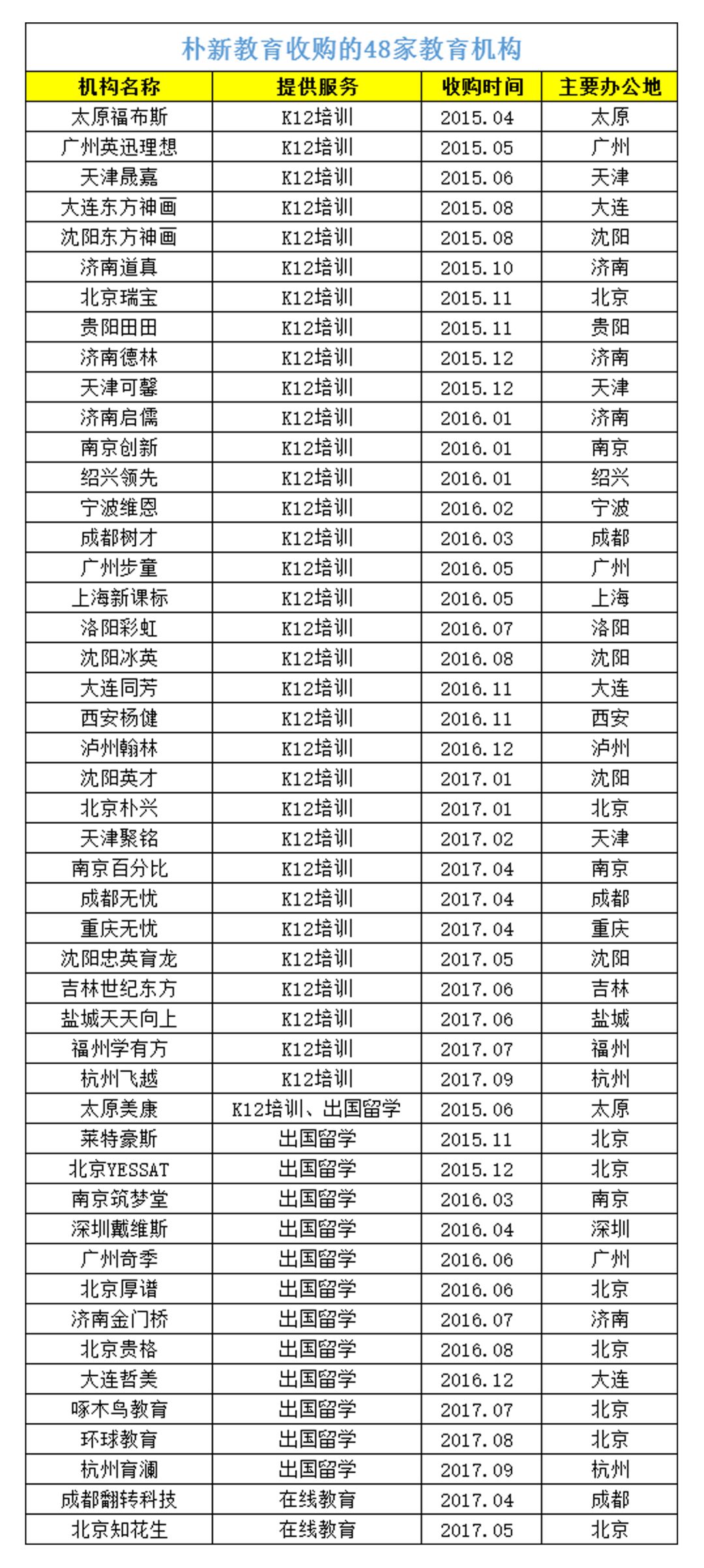 △朴新收购48家企业