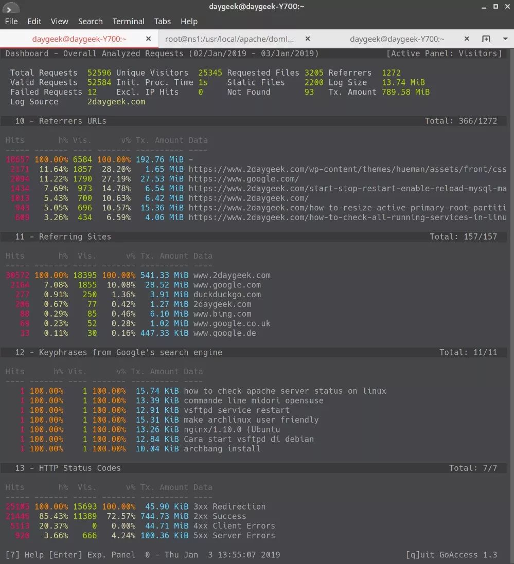 # goaccess -f 2daygeek_access.log --log-format=COMBINED -o 2daygeek.html