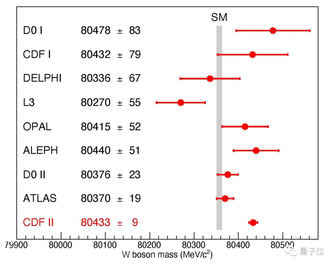需要说明的是,费米实验室的这个最新结果,与他们在2012年公布的数据(80387±19MeV),以及欧洲核子研究中心(CERN)通过ATLAS实验得到的结果(80370±19MeV)均不同。