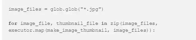 我们也可以得到每次调用辅助函数的结果。executor.map()函数以输入数据顺序返回结果。 Python的zip()函数可以一步获取原始文件名以及相应结果。