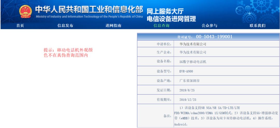 任何移动终端产品均需要取得国家检测机构发布的入网许可证,这是国家的法律法规要求,通常意义上的入网,是指终端厂商向工信部申请获得手机入网许可证。比如华为5G手机获得编号001的入网许可证,就是工信部颁发的。