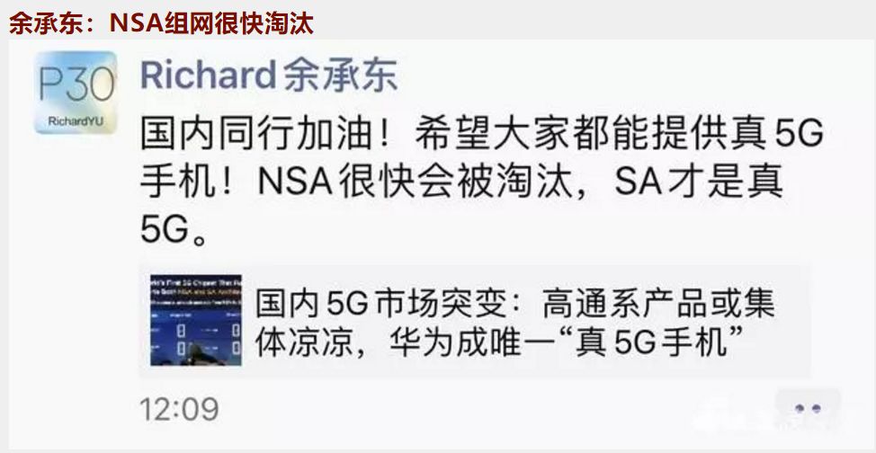 “国内同行加油,希望大家都能提供真5G手机,NSA很快被淘汰,SA才是真5G。”