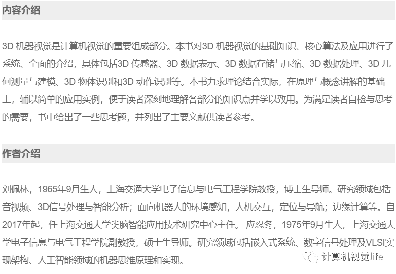 上海交大刘佩林教授、应忍冬教授最近刚出了新书《玩转3D视界 —3D机器视觉及其应用》,计算机视觉life免费送4本!书籍介绍: