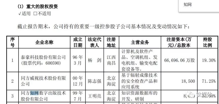 上述这5家公司均由同方股份100%持股。其中最主要的主体应该是同方知网数字出版技术股份有限公司,因为公告里说它是“重要一级控参子公司”。这家公司的主要业务是网络信息服务、电子出版物和数据库开发与销售。