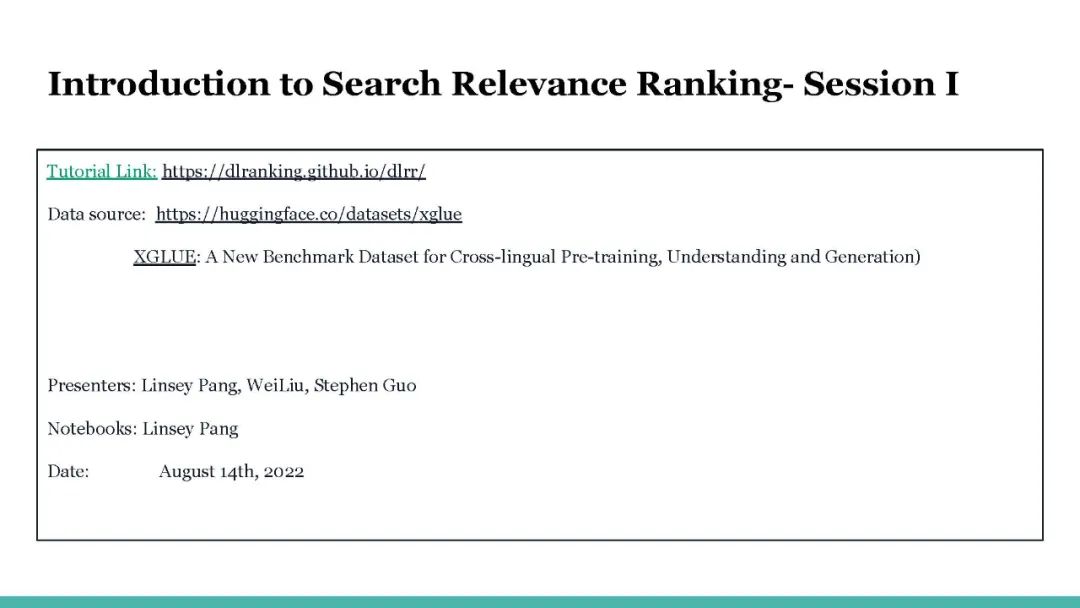 在本教程中,我们将概述搜索排名的实践,并演示各种经典和流行的排名算法,以帮助读者理解搜索相关性算法及其在现实世界中的应用。本教程大纲如下:搜索相关性排名介绍:在这一环节中,我们将概述信息检索[9]中的排名问题。回顾了排序函数的一些早期工作,并简要介绍了各种排序函数模型的历史。我们选择了一些关键的算法来使用真实数据解释和演示它们的排名表现。我们介绍了几个关键的性能指标来评估排名和在线指标。我们的实践课程涵盖了经典排名函数的实现。基于注意力的搜索相关性模型:在这一环节中,我们将概述序列模型的发展,然后讨论注意力机制。我们还将介绍Transformer架构,以及如何在搜索排名系统的上下文中利用其中一些架构。具体内容如下: (1) 我们介绍了序列模型(如RNN和LSTM)是什么,训练它们时所做的假设是什么,它们更适合于搜索排名系统的哪种数据集。(2)注意力/自注意力: 我们解释一般注意力机制。(3) Transformer:与上述两点类似,我们以真实的搜索排序和自然语言处理任务为背景来解释和激发Transformer架构。(4) 操作会话封面训练:注意力/Transformer模型。知识蒸馏的搜索相关性: 在这一环节,我们提供了一个介绍的深度结构化语义模型(DSSM)[3],已广泛采用在工业中,其质量和高效的架构。我们还介绍了最近的NLP突破,BERT[2]在对查询文档对进行评分方面明显优于DSSM及其变体。然而,我们表明,它的Transformer交叉层同时是昂贵的,因此它不允许离线预计算文档。为了连接两者,我们将我们提出的知识蒸馏[5]从教师BERT模型分享到学生模型。新的学习方法明显胜过传统的DSMM模型,从点击中学习。在实践环节中,听众接受了关于在开源数据集上搜索相关性的知识提炼的培训。提供的代码示例用于训练双塔学生模型,测试数据集用于听众体验教师和学生模型之间的度量差异。