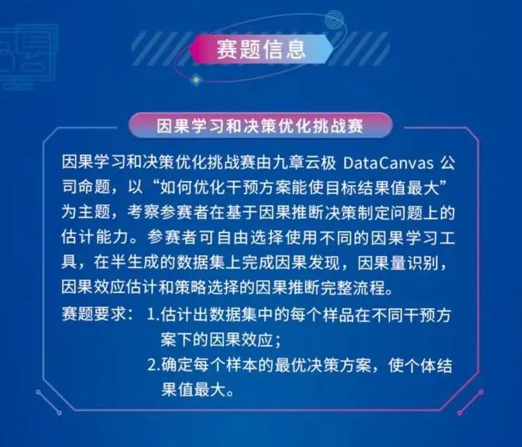 九章云极 DataCanvas 公司「因果学习和决策优化挑战赛」邀你来战