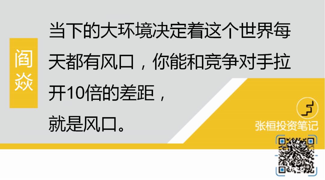 当下的大环境决定着这个世界每天都有风口,你能和竞争对手拉开10倍的差距,就是风口。
