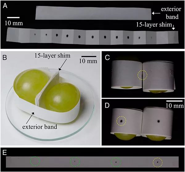 由于热成像仪依赖于物体内部的吸收效应,对物体外部的热场分布并不敏感。为了更严谨地确定只有两颗葡萄的交界处产生了热点,Slepkov、Khattak和Bianucci又想出了一个新点子。