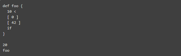 接下来,我们将值0和42输入堆栈:我们将它们包括在括号中以确保它们未被执行就推入堆栈。这是因为它们将分别用于调用if下一行函数的“then”和“else”分支。