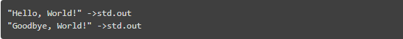 第一行声明一个“锁存(latch)”(锁存器有点像变量),调用 s它包含一个字符串; 第二行将文本赋值 "Hello, World!"给s; 第三行“解锁” s并将内容发送给std.out。在这里,您可以看到ANI的隐式程序排序:由于每行都依赖于前一行,因此此代码将按写入的顺序执行。