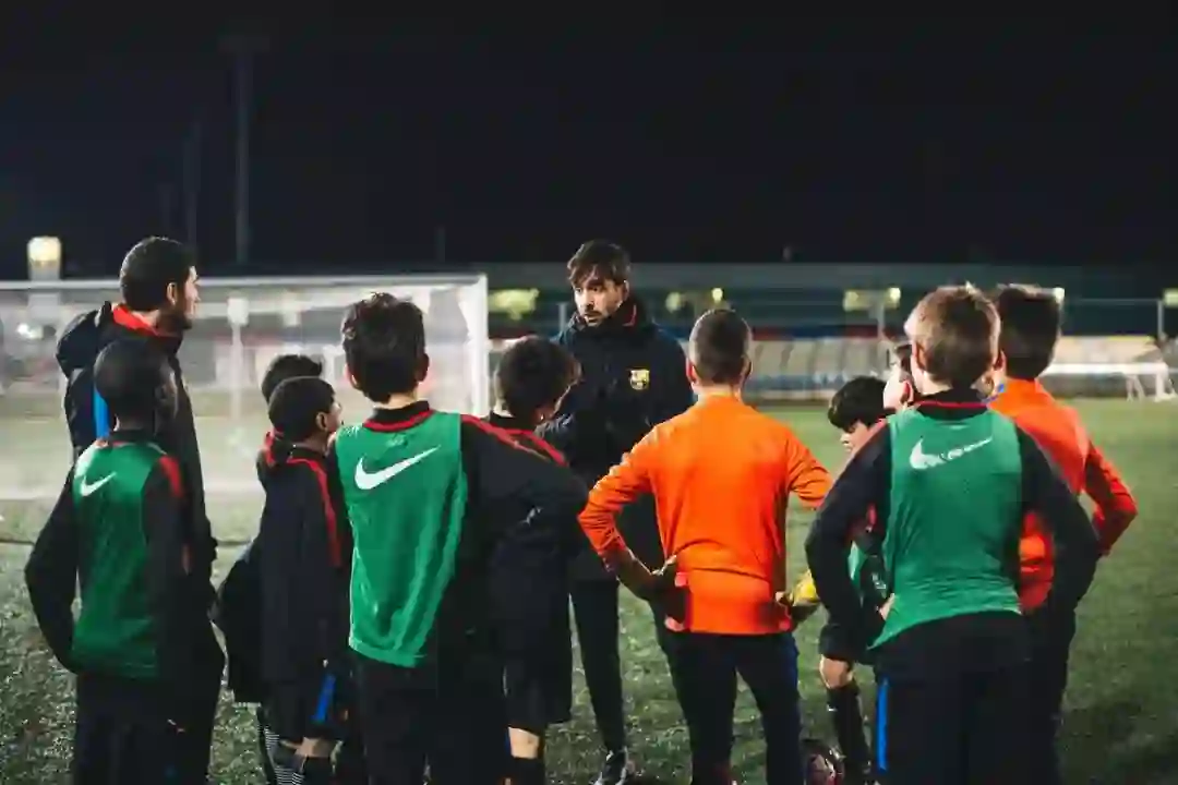 在最近的一个傍晚,巴塞罗那西面的郊区一片昏暗,异常宁静。然而,在一座山峰光线明亮的半山腰上,探照灯照亮了修剪整齐的操场,折射出模糊的色彩和运动身影。约有125个男孩,最小的只有11岁,在草坪上来回奔跑,用精心编排的进攻和防御动作控制着脚下的足球。