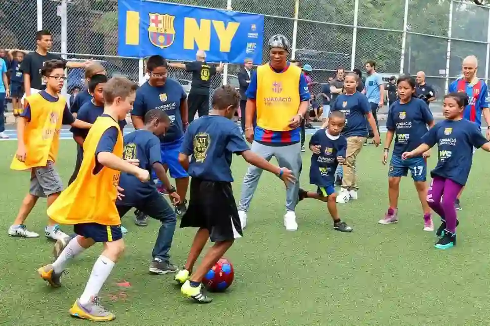 2016年9月,巴萨驻纽约办事处成立,俱乐部前球星罗纳尔迪尼奥到纽约市布朗克斯区的一所公共学校和孩子们踢球。巴萨打算扩展在美国的业务。Getty Images