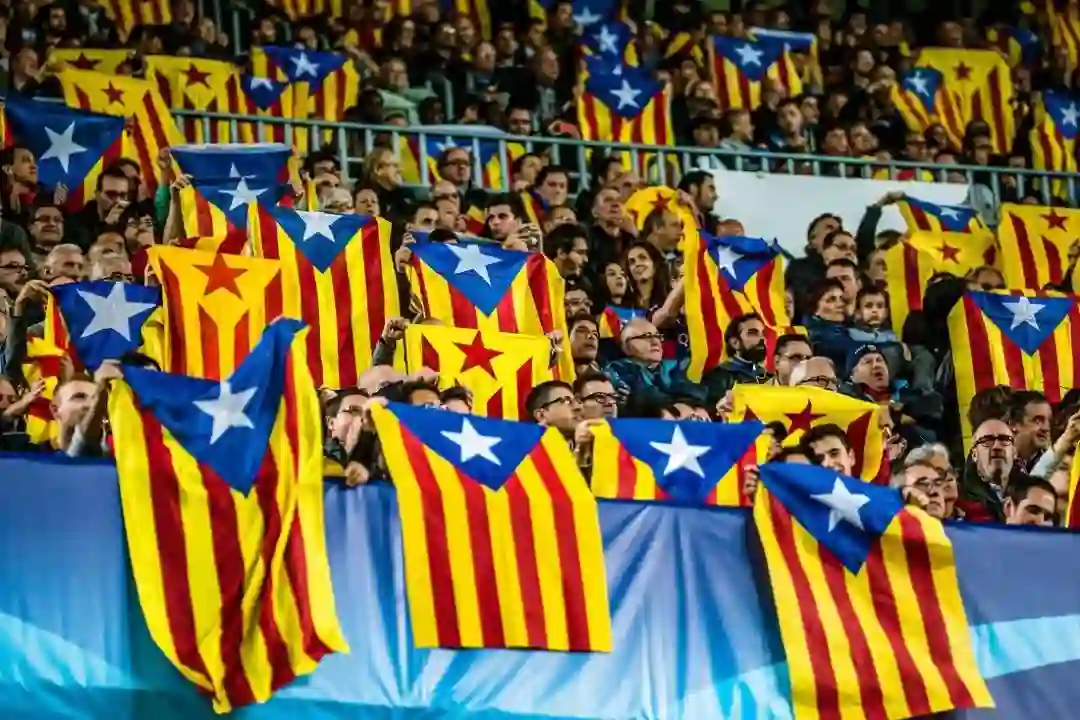 球迷高举加泰罗尼亚旗帜,抒发加泰人的自豪感。Getty Images