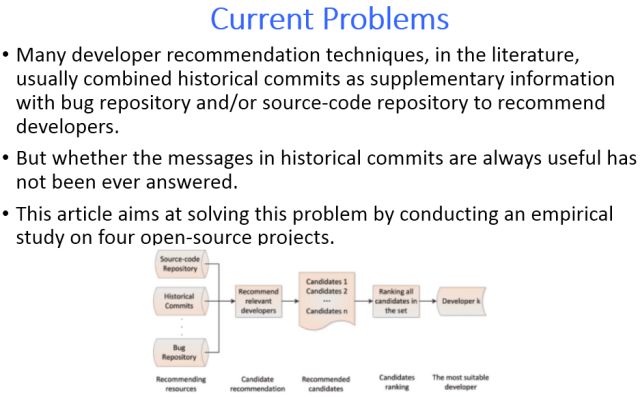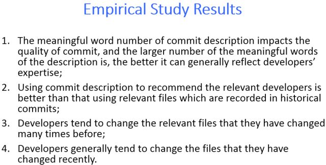 软件演化过程中,会出现各种各样的软件问题,这些软件问题需要及时有效地分配给合适的开发者解决。已有工作研究出各种各样的开发者推荐技术,其中很多技术挖掘历史提交信息,并与Bug库和/或源代码库等组合起来推荐开发人员。但是,历史提交中的信息是否总是有效的问题尚未得到解答。本文旨在通过对四个开源项目进行实证研究来验证挖掘历史提交信息支持开发者推荐的有效性。结果表明:1)长度较长的Commit提交描述可以较好地反映出开发者的历史开发经验,且Commit提交描述中关键词的数量越多,其质量越好;2)使用源码文件推荐开发者虽然可行,但使用Commit提交描述推荐开发者的质量会更好;3)大部分开发者倾向于修改以前多次修改过的文件,并且以前修改次数越多的文件,他们越偏向与修改这些文件,所以使用修改次数作为推荐开发者的排序参考因素是有效的;4)大部分开发者倾向于修改最近刚修改过的源码文件的偏好,所以使用最近修改时间因素排序推荐的开发者是有效的。