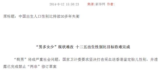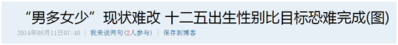 下图是《南方都市报》当时的报道《十二五出生性别比目标恐难完成》