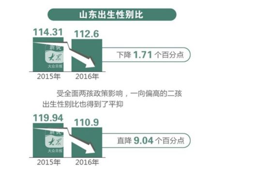 降低二孩生育成本可以极大的改善二孩性别比,这不是理论分析,而是实际已经发生的事实,还是以出生人口,以及二孩人数占全国第一的山东省为例:山东省2016年在全面二孩放开后,二孩出生人口性别比出现了惊人的改变,从2015年的119.94下降到了2016年的110.9,一年大幅下降了9.04个百分点。