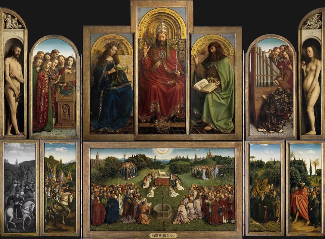 它由 Van Eyck(凡·艾克)兄弟,于 1415 年到 1432 年,历时 18 年完成,是一幅由内外 20 个画板构成一种折叠式巨大画作,完全打开时长 3.5 米,宽 4.7 米。