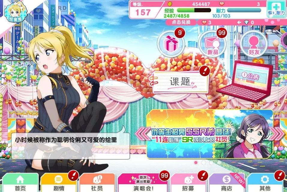 算是吧,在动画里就很喜欢绘里,初始的角色选了她。然后就开始了在游戏里一发不可收拾的收集卡片的生活,碰到有她的活动都会认真打(活动累计到一定点数会送SR卡片)。