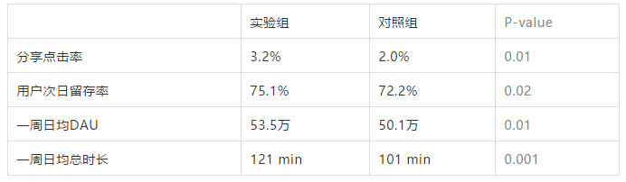 这些都是前期分析数据的关键产出,而「提升分享率能够提升DAU和时长」是一个假设,需要实验验证。