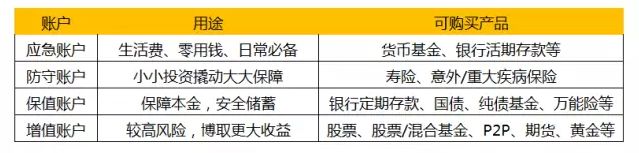 首先是应急账户。准备3-6个月的日常生活费,而3个月内预计会用到的钱也应该纳入应急账户管理。