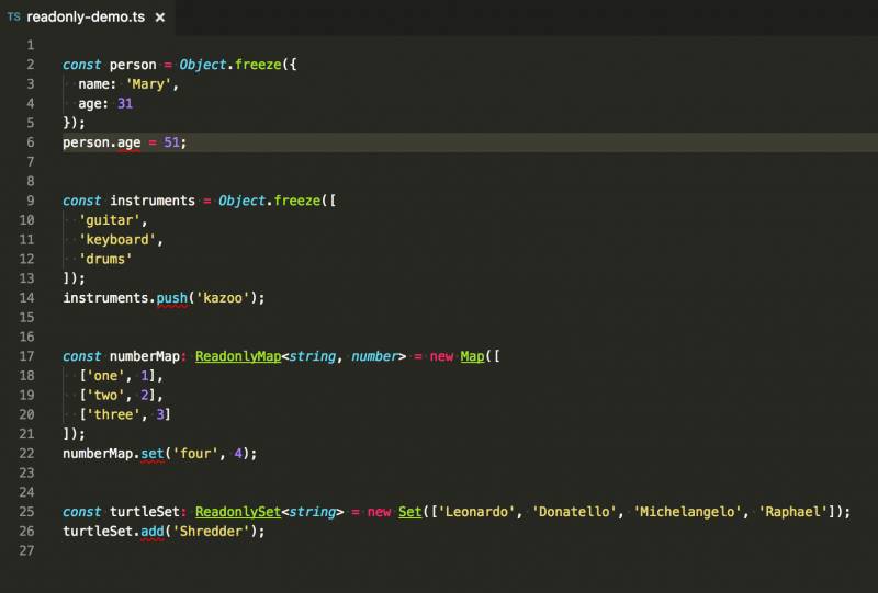 // o3.foo = 'Come on, uncomment me. I dare ya!'; // Error!