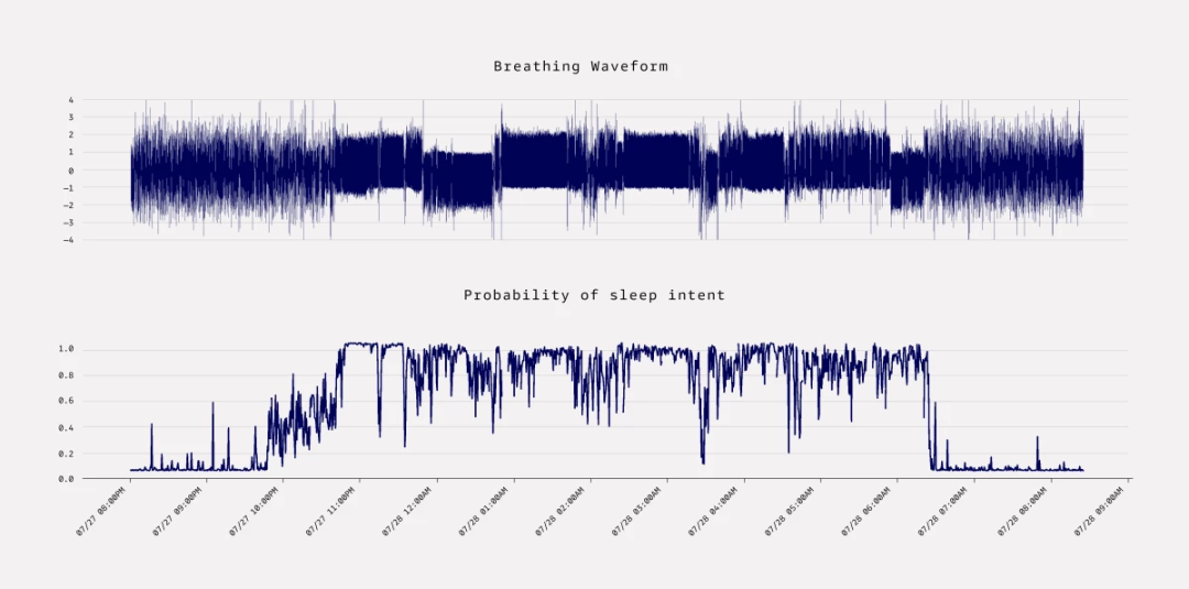 Halo Rise 的核心技术是内置雷达传感器,其可以安全地发射接收超低功率无线电信号。该传感器使用不同天线处反射信号之间的相位差来测量运动和距离。通过片上信号处理,Halo Rise 产生与用户呼吸对应的离散波形。同时,该设备无法检测与单个用户相关的噪声或视觉标识符,例如身体的图像。
