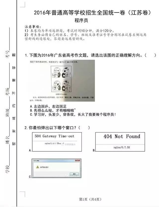又是一年高考季,一起来做做“程序员们的高考试卷”,压压惊吧~