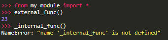 现在,如果使用通配符从模块中导入所有名称,则Python不会导入带有前导下划线的名称(除非模块定义了覆盖此行为的__all__列表):