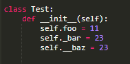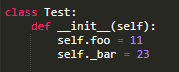 如果你实例化此类,并尝试访问在__init__构造函数中定义的foo和_bar属性,会发生什么情况? 让我们来看看: