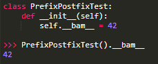 也许令人惊讶的是,如果一个名字同时以双下划线开始和结束,则不会应用名称修饰。 由双下划线前缀和后缀包围的变量不会被Python解释器修改: