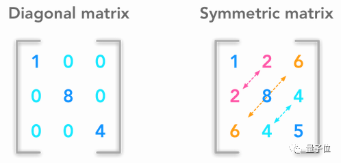 △ 对角矩阵 (左) 与对称矩阵 (右)