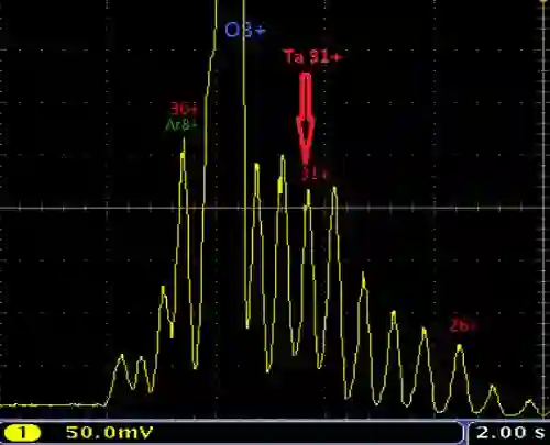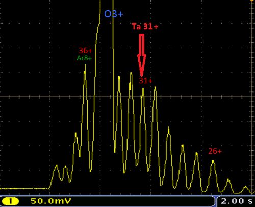 图1.离子源SECRAL分析产生的Ta31+离子束图谱
