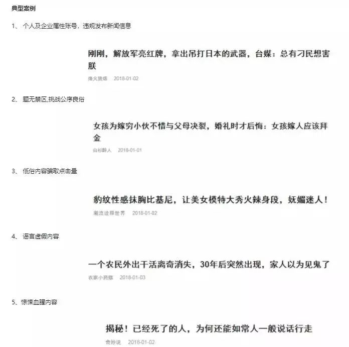 比如:低俗、色情、虚假、标题党、抄袭等等。尤其是娱乐八卦相关的低俗信息,被整治的力度更是日益增强。