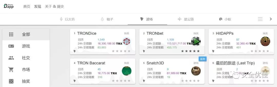 从主网上线开始到现在,波场一直都在稳步发展,与DappReview、DapDap等多家DApp生态平台合作,围绕开发者社区、线上线下活动及运行推广全方位扶持开发者落地优质 DApp 内容,波场DApp至今为止也没有出现过一次安全漏洞问题。