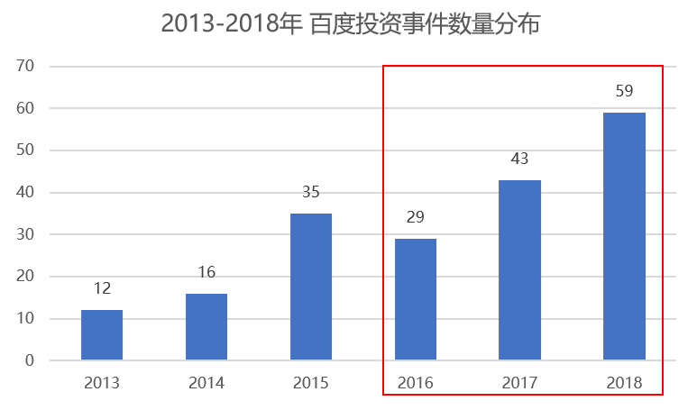 2016 年对于百度「投资事业」有着分水岭意义。2016 年下半年,百度先后成立百度风投和百度资本,相应地,2017 年起百度「出手」频次明显提升。进入 2018 年,在资本寒冬之下,百度「出手」频次却大幅增加,截至目前投资事件达 59 起。