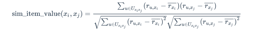 在基于用户相似度的协同过滤中,用户相似度的计算是基本前提。Pearson相关系数主要用于度量两个变量 i 和 j 之间的相关性,取值范围是+1(强正相关)到-1(强负相关),计算公式为: