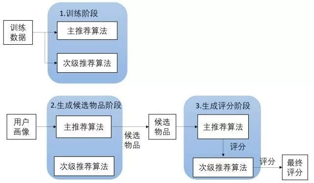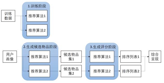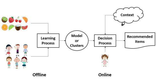 尽管不同的网站使用不同的推荐系统,但是总的来说,几乎所有的推荐系统的结构都是类似的,都由线上和线下两部分组成。线下部分包括后台的日志系统和推荐算法系统,线上部分就是我们看到的前台页面展示。线下部分通过学习用户资料和行为日志建立模型,在新的上下文背景之下,计算相应的推荐内容,呈现于线上页面中。