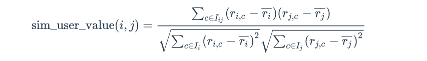 式中,为用户 i 和 j 共同评价过的物品的集合,c 是这个集合中的物品元素,