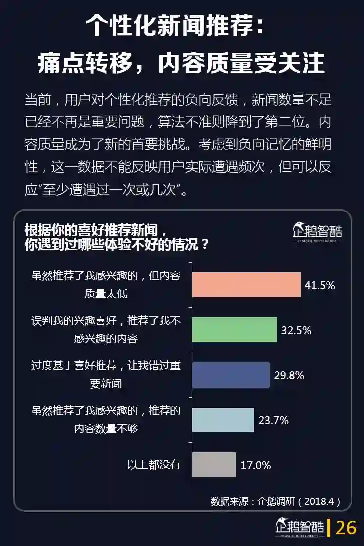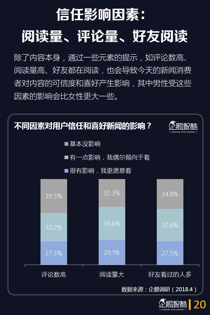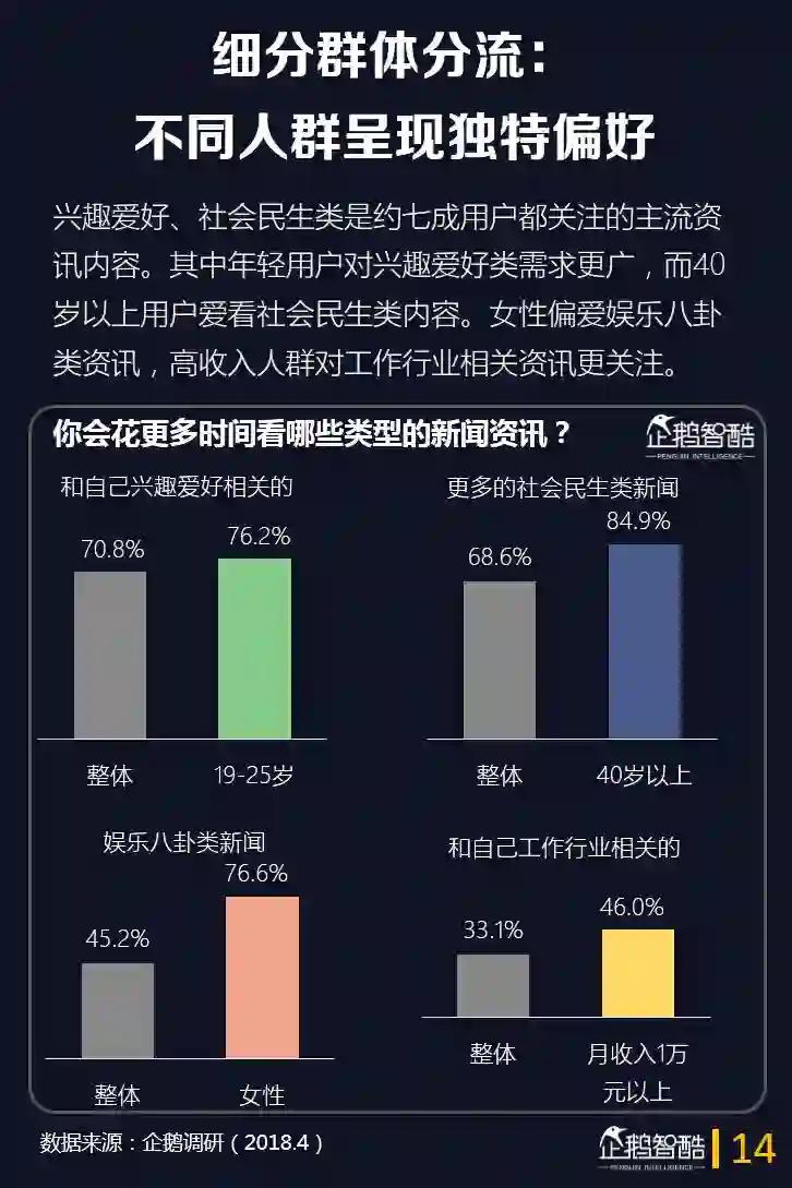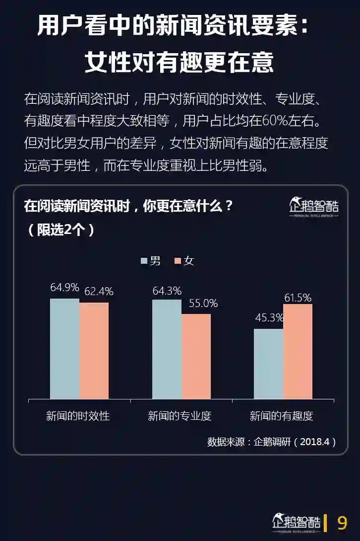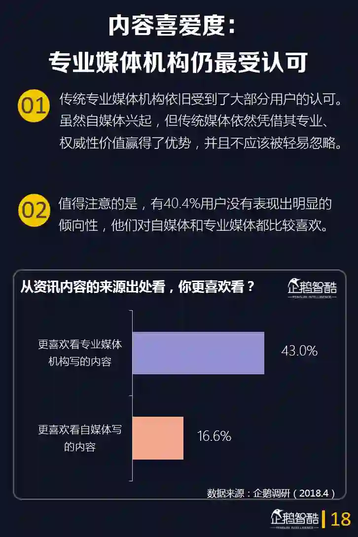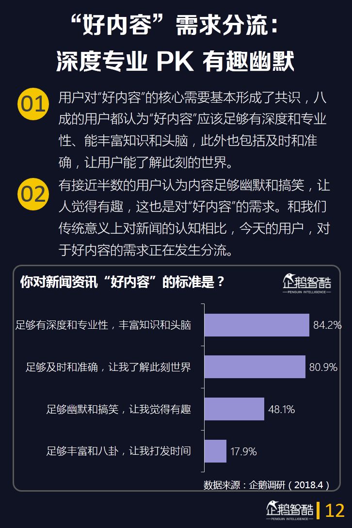 这一次,企鹅智酷从媒体价值的角度出发,通过企鹅调研数据并结合QuestMobile的大数据监测,呈现当前互联网用户在新闻消费上的新需求和特点。