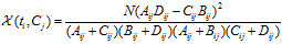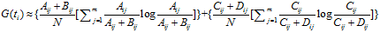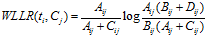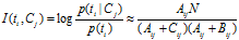 p(ti) = (Aij + Bij) / N; p(Cj) = (Aij + Cij) / N;