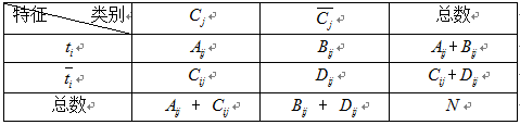 Aij + Cij:Cj类的文档数量数据 ;Bij + Dij:非Cj类的文档数量数据